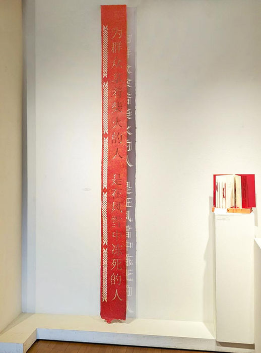 I cut this into a special handmade strip of pigmented paper. A Chinese proverb passed around on social media in tribute to Dr. Li Wenliang in Wuhan, China, cut into pigmented manilla hemp paper. “Those who carry firewood for the masses are those who freeze to death in the wind and snow.”